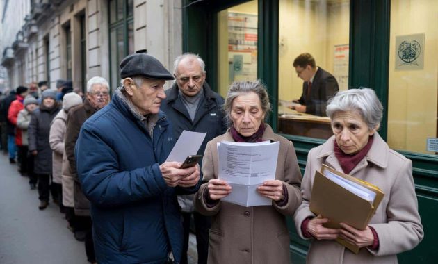 People were comparing letters they had gotten from the national pension fund while holding folders to their chests and coats