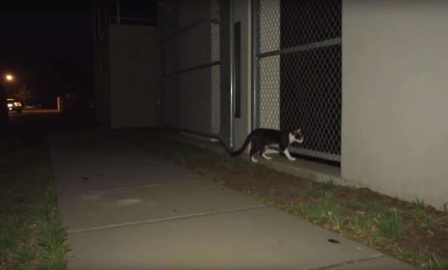 Surveillance cameras had captured the heartbreaking scene earlier that evening, as the cat pawed and meowed, trying in vain to find a way inside. Despite its best efforts, the gate remained firmly closed, cutting off the animal’s only chance at refuge and safety.
