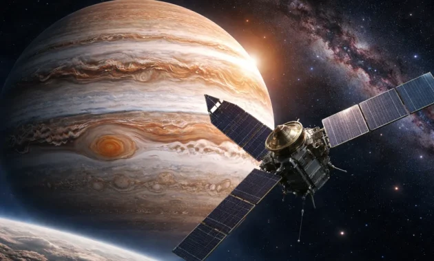 Since entering orbit in 2016, Juno has been repeatedly diving close to Jupiter’s cloud tops, collecting high-precision data on gravity, atmosphere, and magnetic fields.