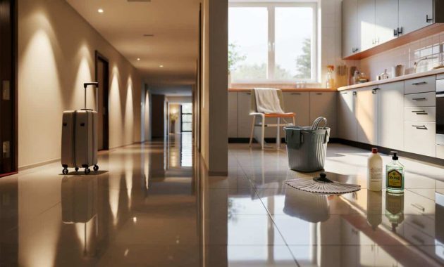 Drittens: in Bahnen wischen, vom hinteren Ende des Raums zur Tür. Nicht hin und her, sondern eher wie beim Rasenmähen, immer leicht überlappend. Am Ende den Boden zehn Minuten in Ruhe lassen, dann mit einem trockenen Tuch oder einem trockenen Mopp sanft nachreiben. *Da entsteht dieser stille Moment, in dem der Boden plötzlich “Hotel” sagt.*