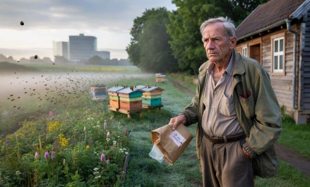 A retired man, a former craftsman, owns a bit of land behind his house. He no longer has the strength to farm it himself, so he lets a beekeeper use part of it. No written contract, no official rent, just a friendly arrangement between two people who still believe a handshake counts for something.