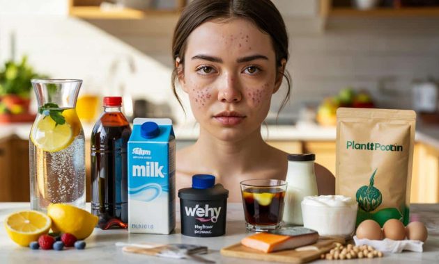 Drittens: **Whey-Protein** im Shake oder Riegel. Gerade nach dem Training beliebt, auf der Haut für einige Menschen ein Brandbeschleuniger. Viele berichten über neue Unterlagerungen an Kiefer, Rücken und Schultern nach dem Umstieg auf Whey. Wechseln Sie testweise zu pflanzlichem Protein (Erbse, Reis, Hanf) oder essen Sie echtes Essen: Eier, Fisch, Hülsenfrüchte.