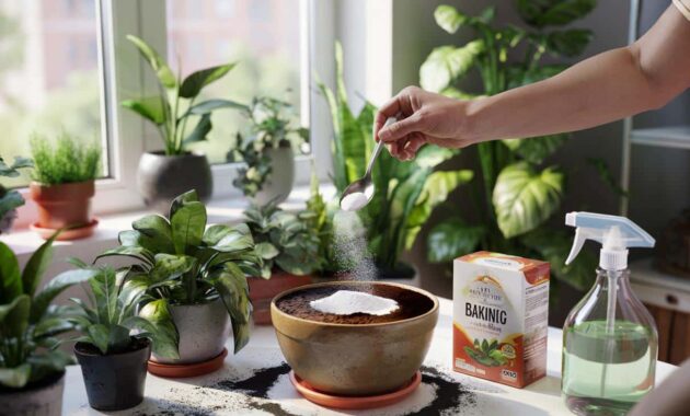 Some gardeners sprinkle a thin dusting of baking soda over the surface of the compost after watering. The aim is to discourage mould and soil‑dwelling pests such as fungus gnats.